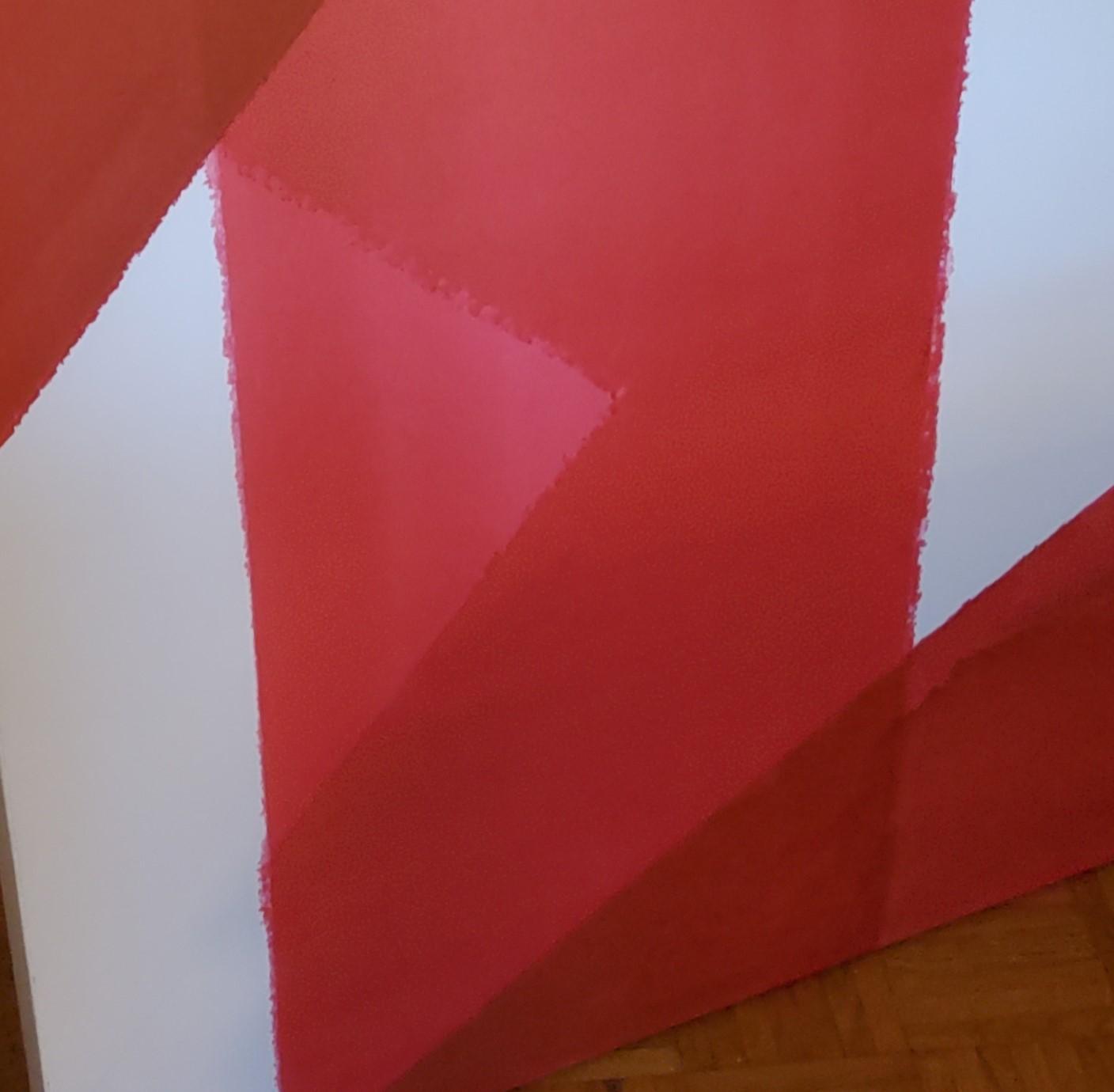 Dans cette œuvre, j’explore la puissance de la simplicité à travers l’encre rouge expressivement appliquée sur plusieurs couches.