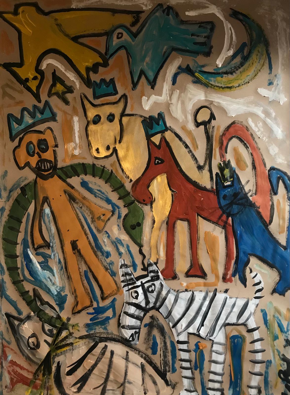 THE PAINTING TELLS A VISION OF THE ANIMAL WORLD AS A JOINT ECOSYSTEM.