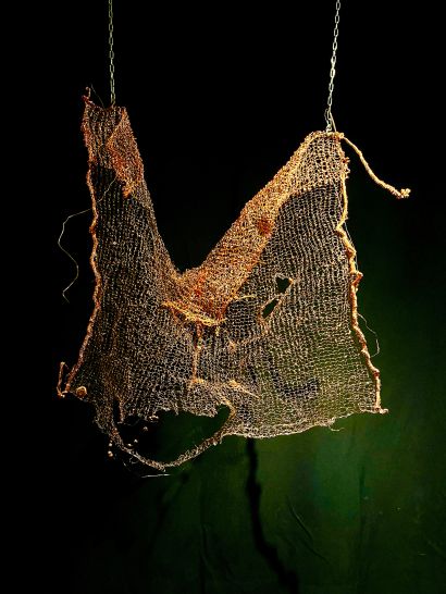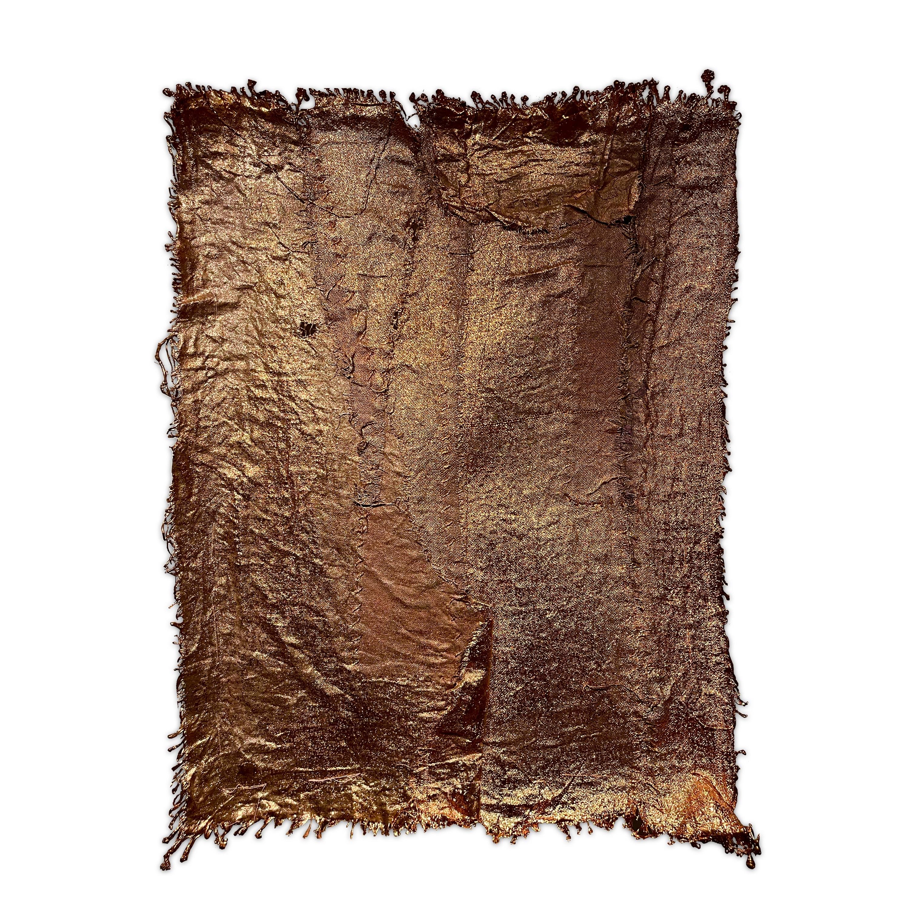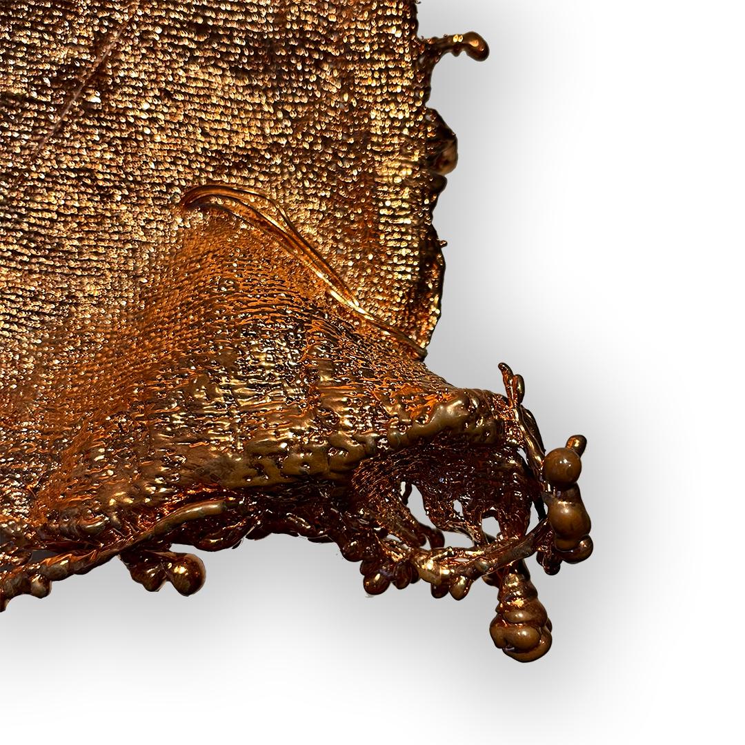 The ‘Chrysopoeia’ series is a product of time, patience, and dedication, much like the alchemical process itself. The resulting copper, while retaining the traces of the original fabric, reveals itself as something new and astonishing. The intricate details, refined texture, and metallic iridescence of each piece invite the viewer into a deeper contemplation on the nature of transformation and the hidden potential within everyday objects.