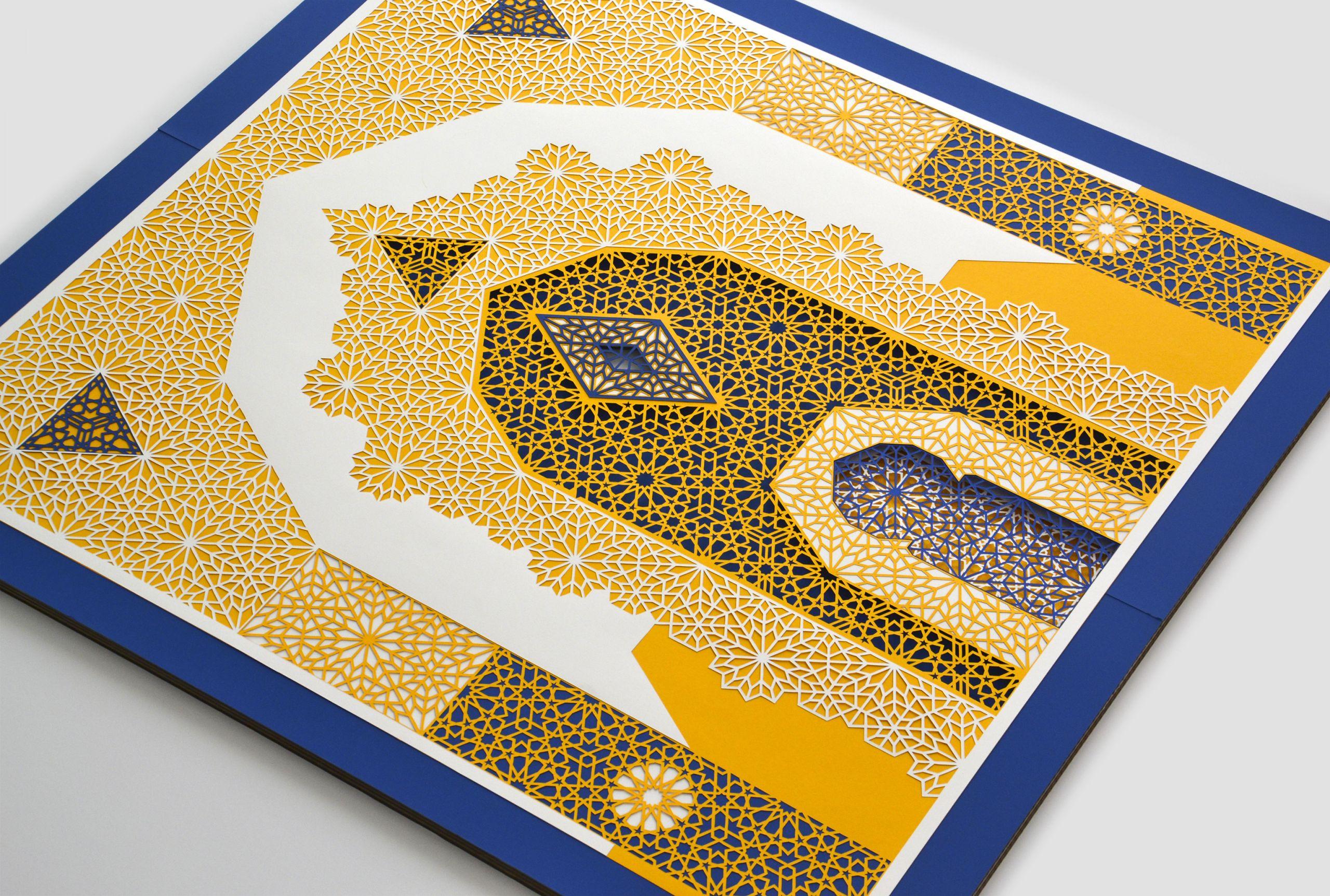 Multiculturalism indicates a society where several cultures, even very different ones, coexist, respecting each other. The first goal of multiculturalism is the enhancement of diversity and the full citizenship of all residents, as well as the care of this project.I wanted to weave two different patterns between them but with the same construction lines that allowed me to fit and create new technical drawings within them, enhancing the two geometric patterns, giving a semantic meaning to multiculturalism. I wanted to merge two different patterns, but with the same construction lines that allowed me to interweave and create new technical designs.The colors used, yellow (day), blue (night), are opposite to each other, but create harmony and compatibility. I wanted to keep the concept of this project also for the colors.